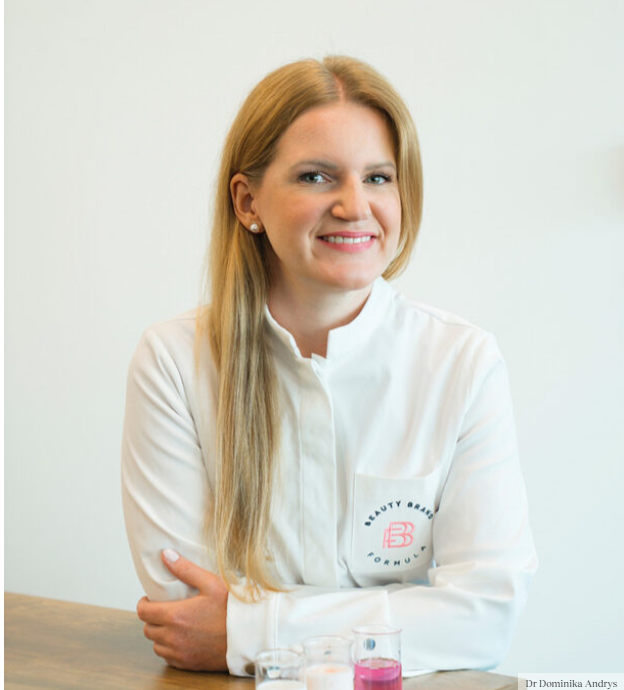 Dr. Dominika Andrys is an award-winning cosmetic chemist and biotechnologist with more than 15 years of experience developing innovative skincare, haircare, and body care formulations. She holds a PhD in Plant Biotechnology from the West Pomeranian University of Technology in Poland, where her research explored lavender-derived bioactives, bridging plant science with cosmetic dermatology.